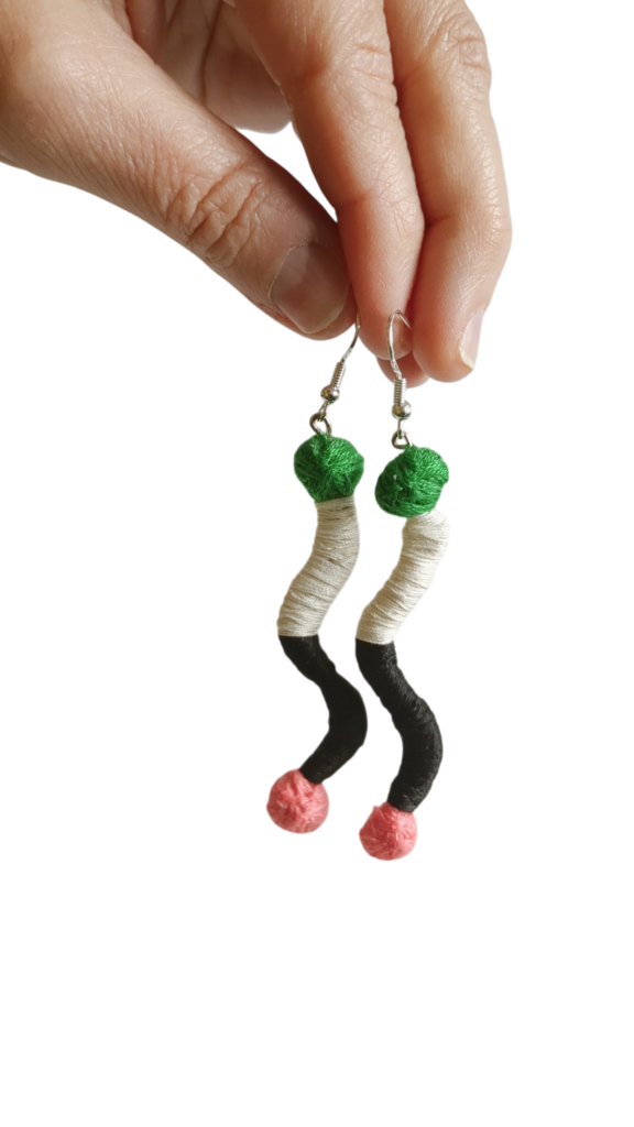 « J’ai commandé une paire de boucles d’oreilles brodées, elles sont magnifiques et uniques. Bravo pour le travail ! »