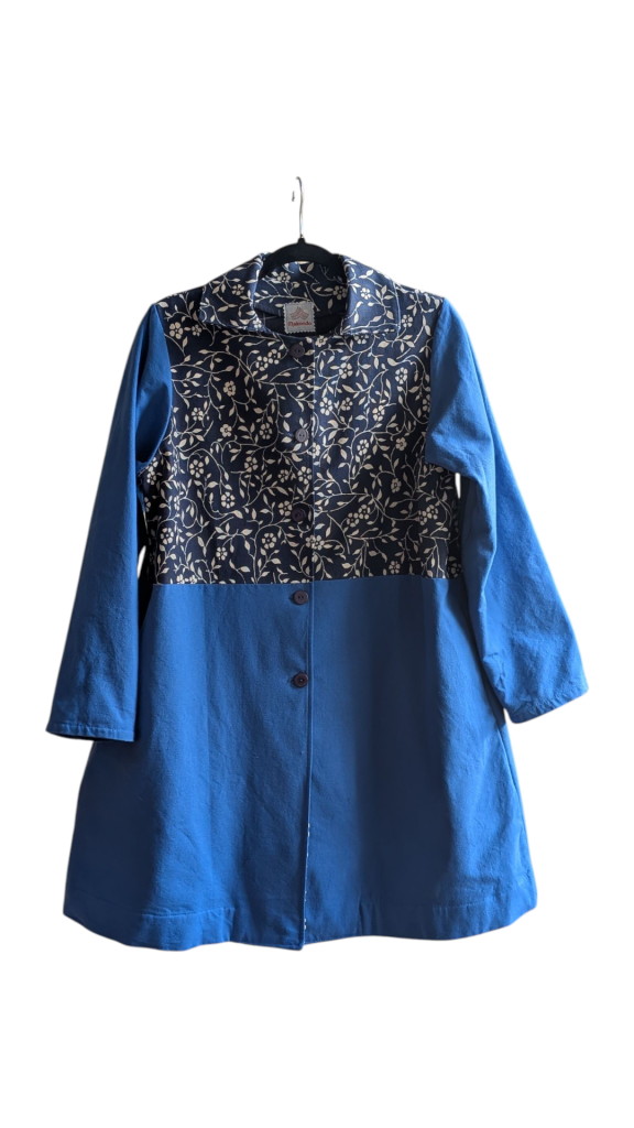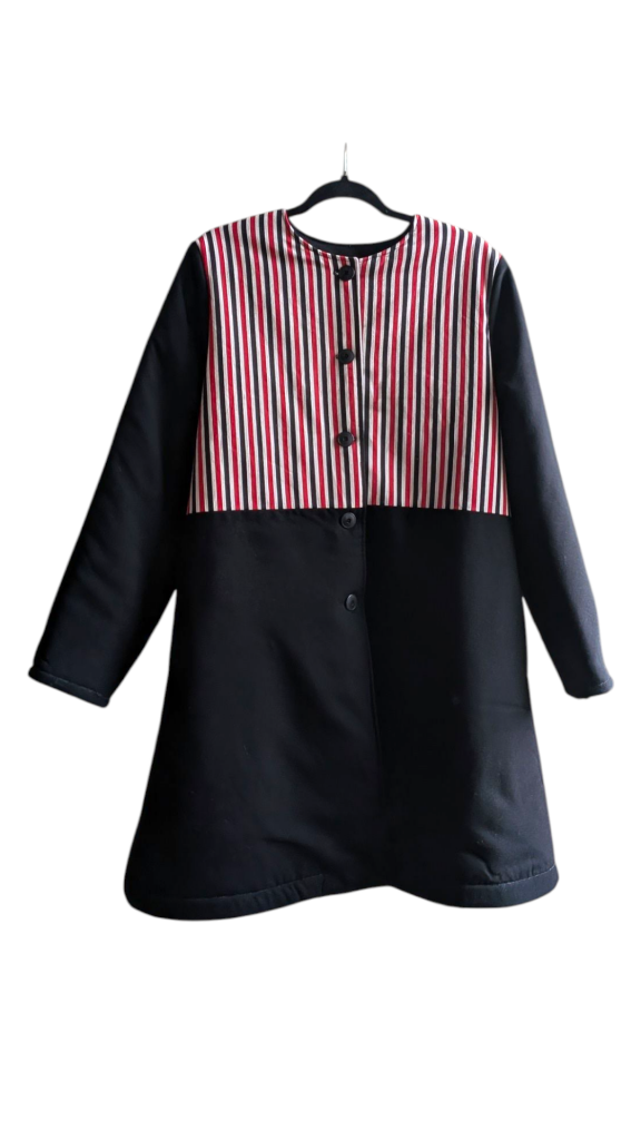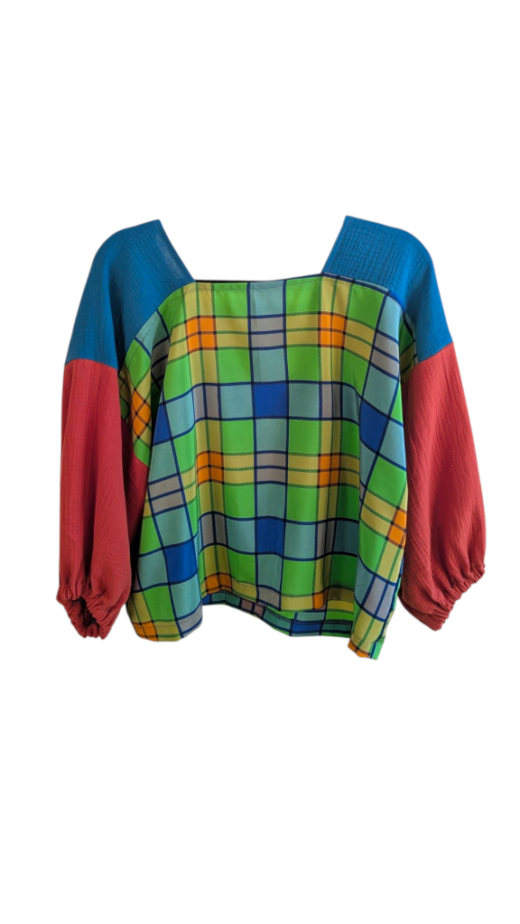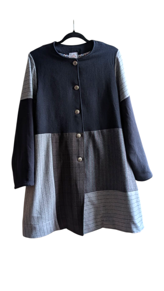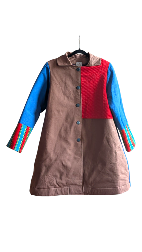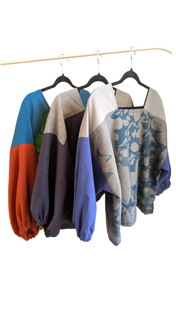 Tous nos articles sont conçus à partir de matériaux revalorisés : chutes de tissus, vêtements oubliés, textiles anciens.