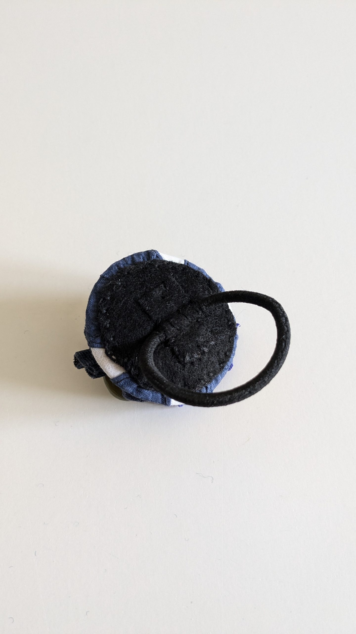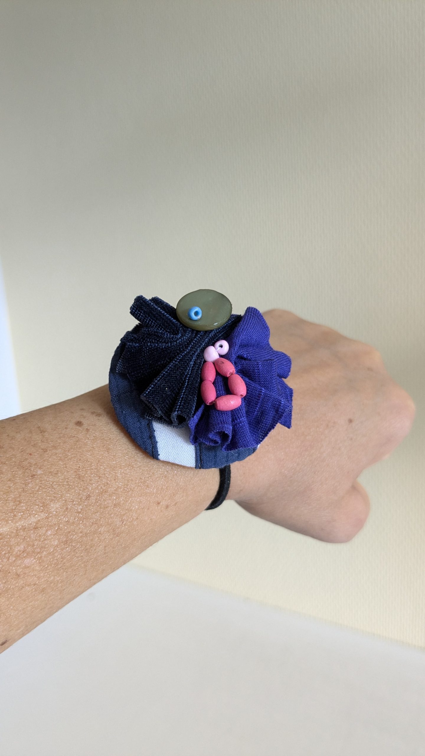 Élastique cheveux fait main, réalisé à partir de tissus variés assemblés avec soin.
