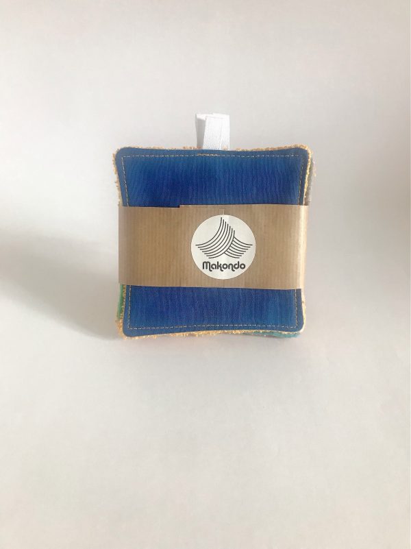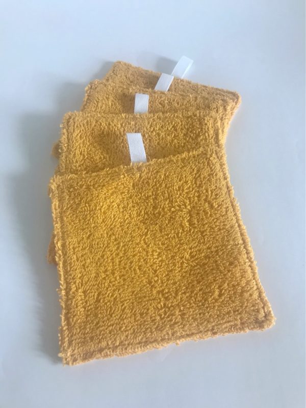 C’est un lot de 4 lingettes démaquillantes et lavables en coton imprimé recyclé , éponge  moutarde oeko-tek