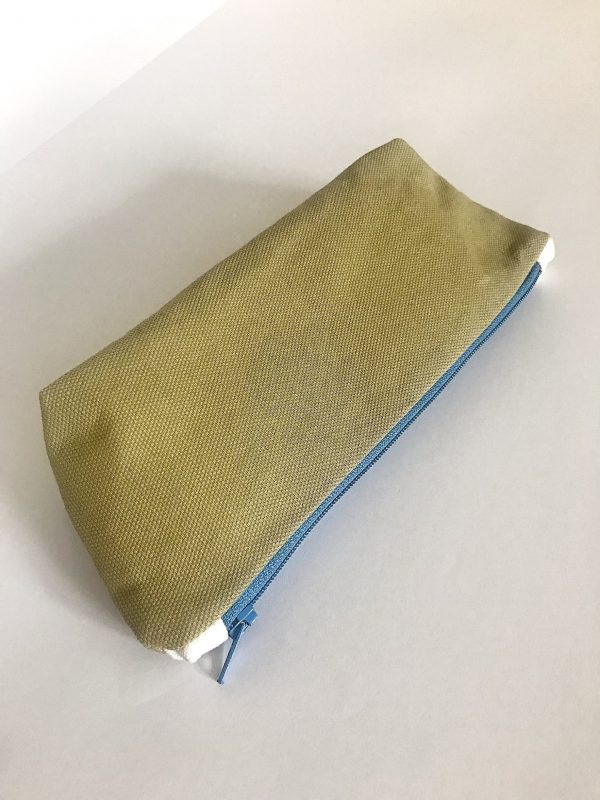 Trousse stylo réalisée en coton recyclé vert et bleu,