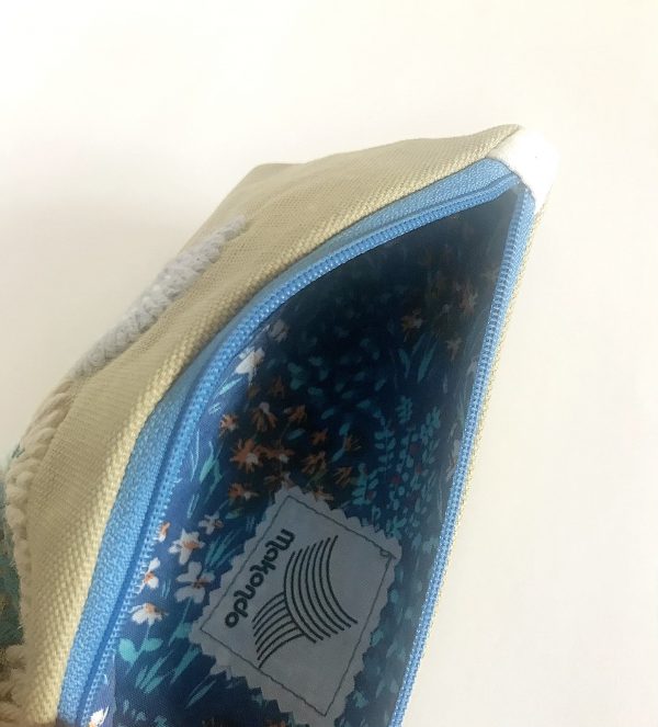 Doublée en coton imprimé , fermeture éclair bleu en plastique,