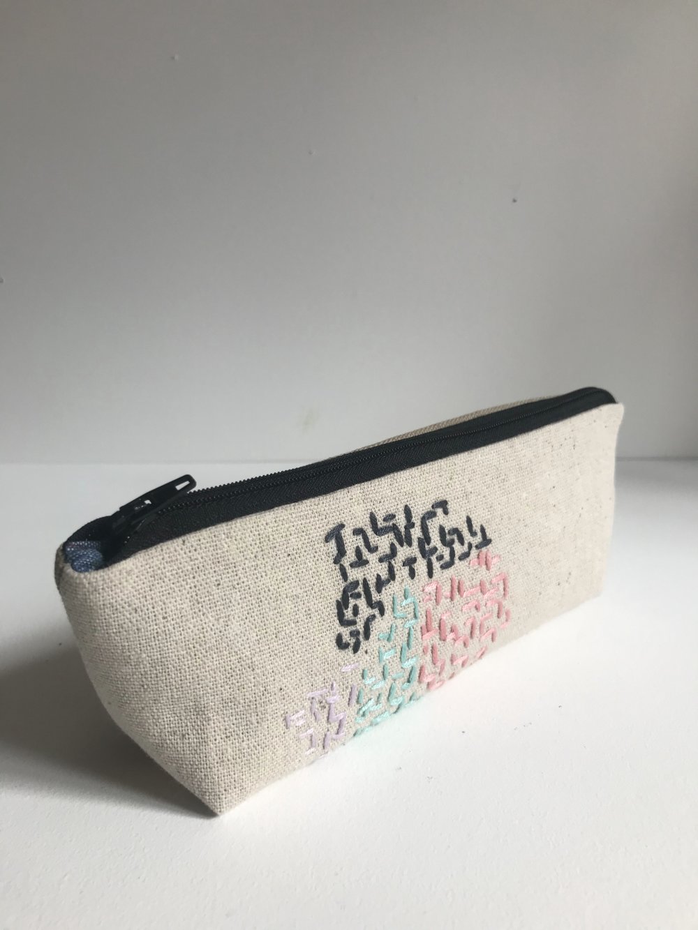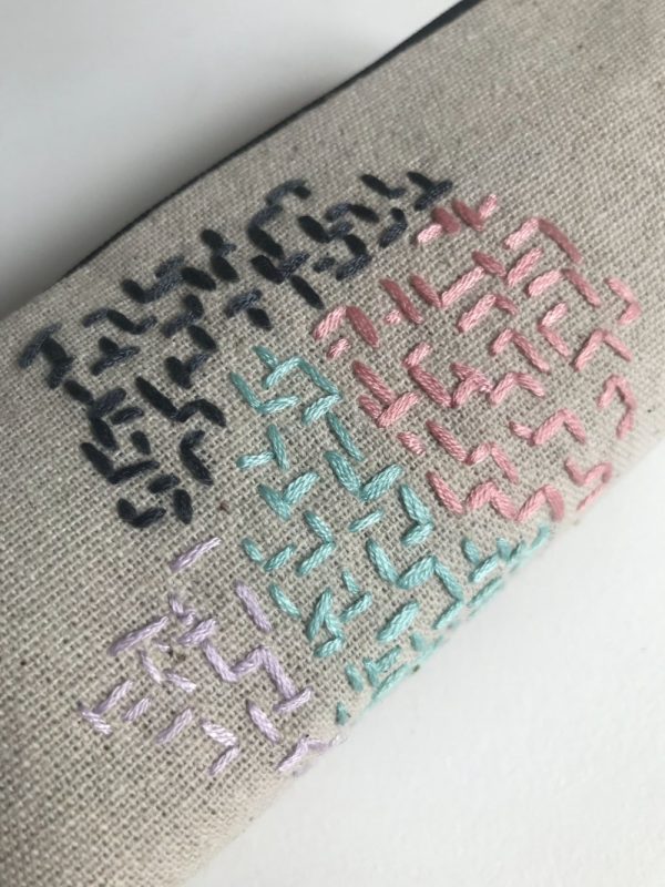 Soyez le premier à laisser votre avis sur “Trousse stylo motif géométriques brodée à la main.”