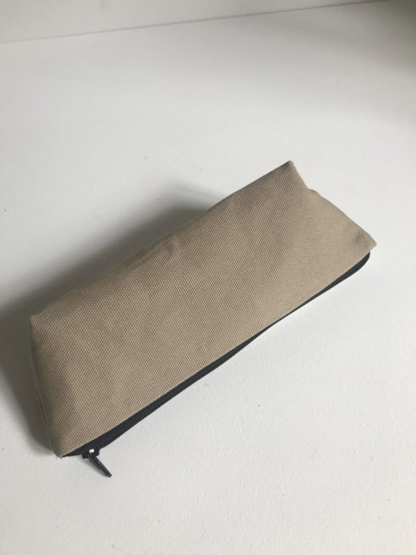 Trousse stylo réalisée en coton recyclé beige et noire,
